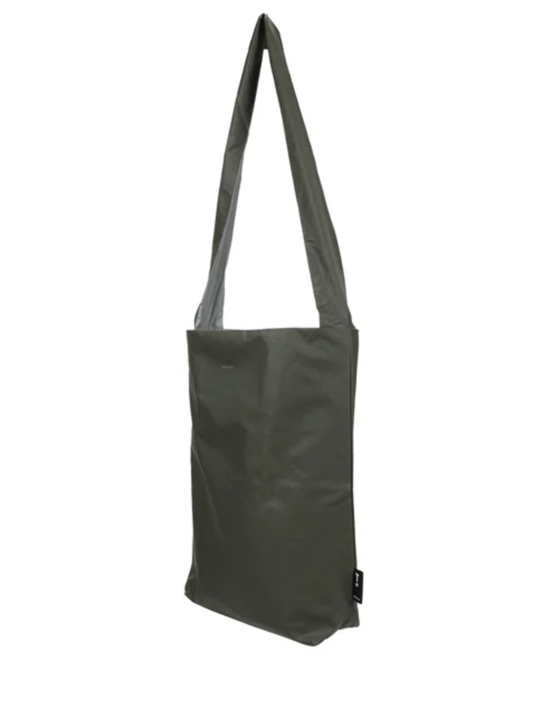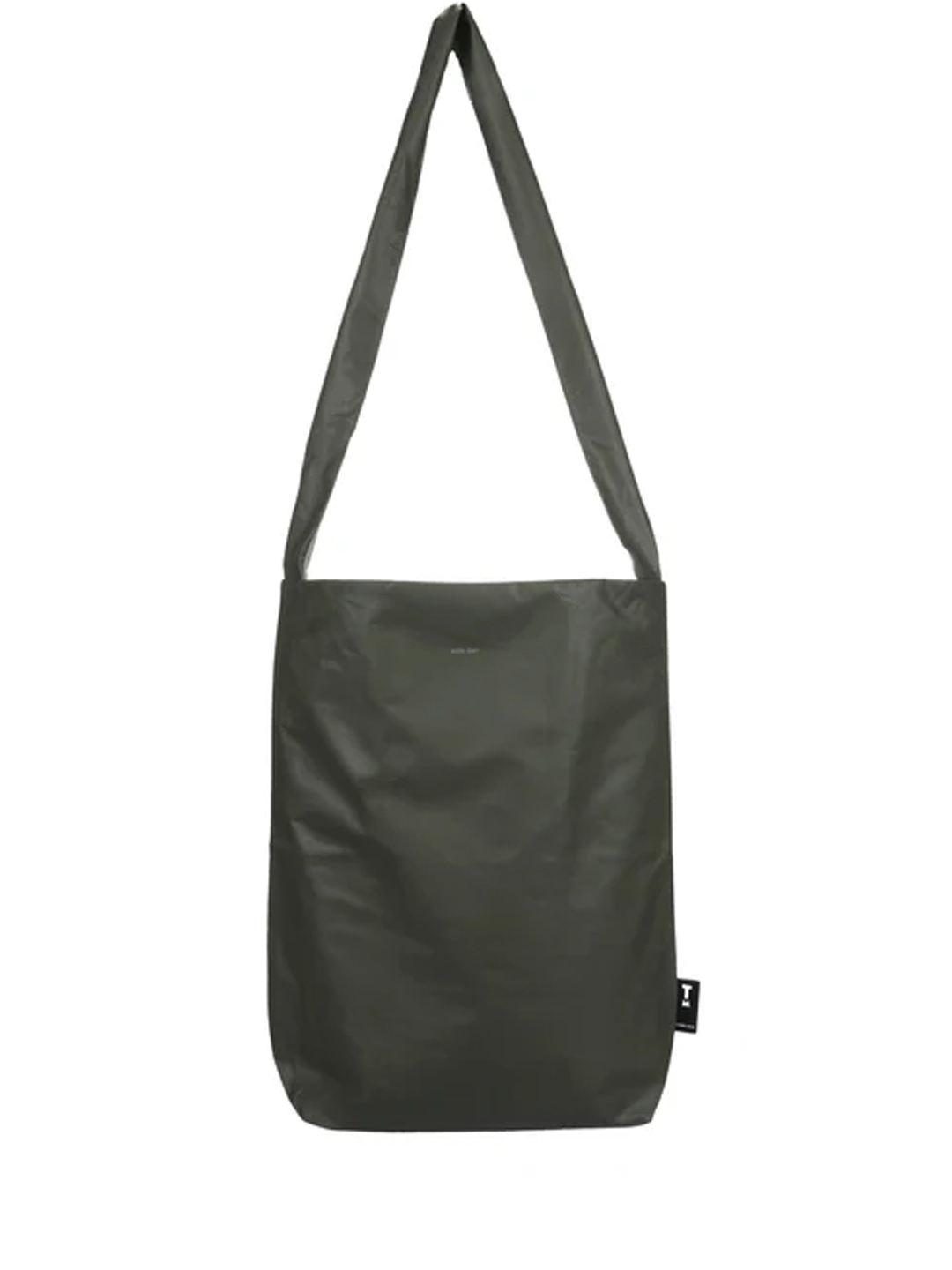 Bolso vegano impermeable y reversible de color verde oliva/ gris de Tinne and Mía. Fabricado en piel vegana de alta calidad e interior de nailon, impermeable en ambos casos. El bolso viene dentro de una bolsa con cierre de cremallera. El bolso lleva impreso en contraste "MON DAY"