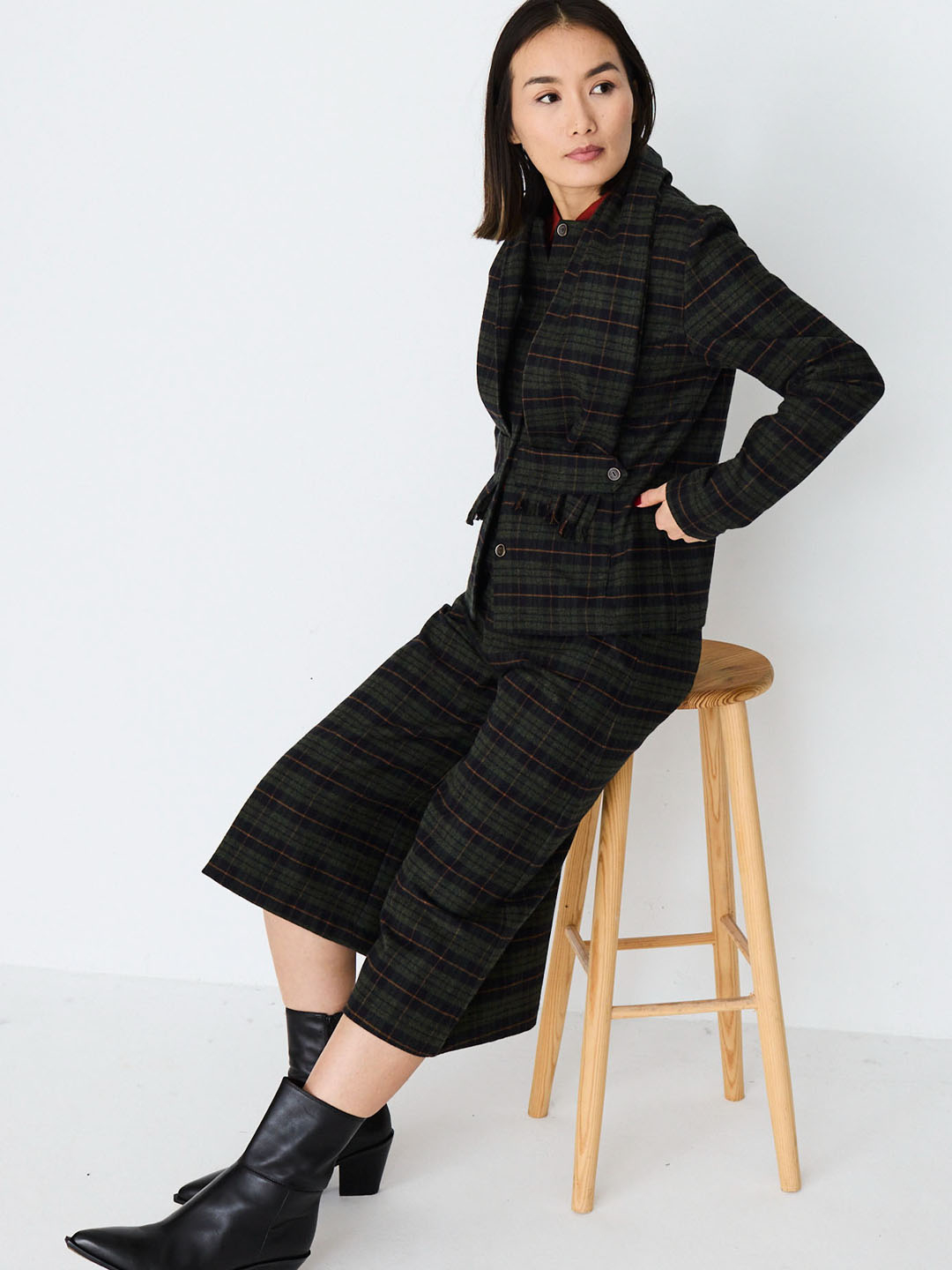 Chaqueta Corvinon Tartan Plaid Green de Monica Lavandera. Esta chaqueta está confeccionada en algodón. Leva unha bufanda extraíble que lle da moito xogo. O texido e moi suave e o tartain plaid green dalle un toque de elegancia e modernidade a vez. E unha chaqueta con mangas longas e cuello redondo. Na parte diante ten unha tira decorativa con botons. Esta chaqueta e perfecta para combinar co pantalon Polaca Tartan Plaid Green. Unha prenda que non pode faltar no armario esta tempada de outono e inverno. Ademais esta prenda e de edición limitada.