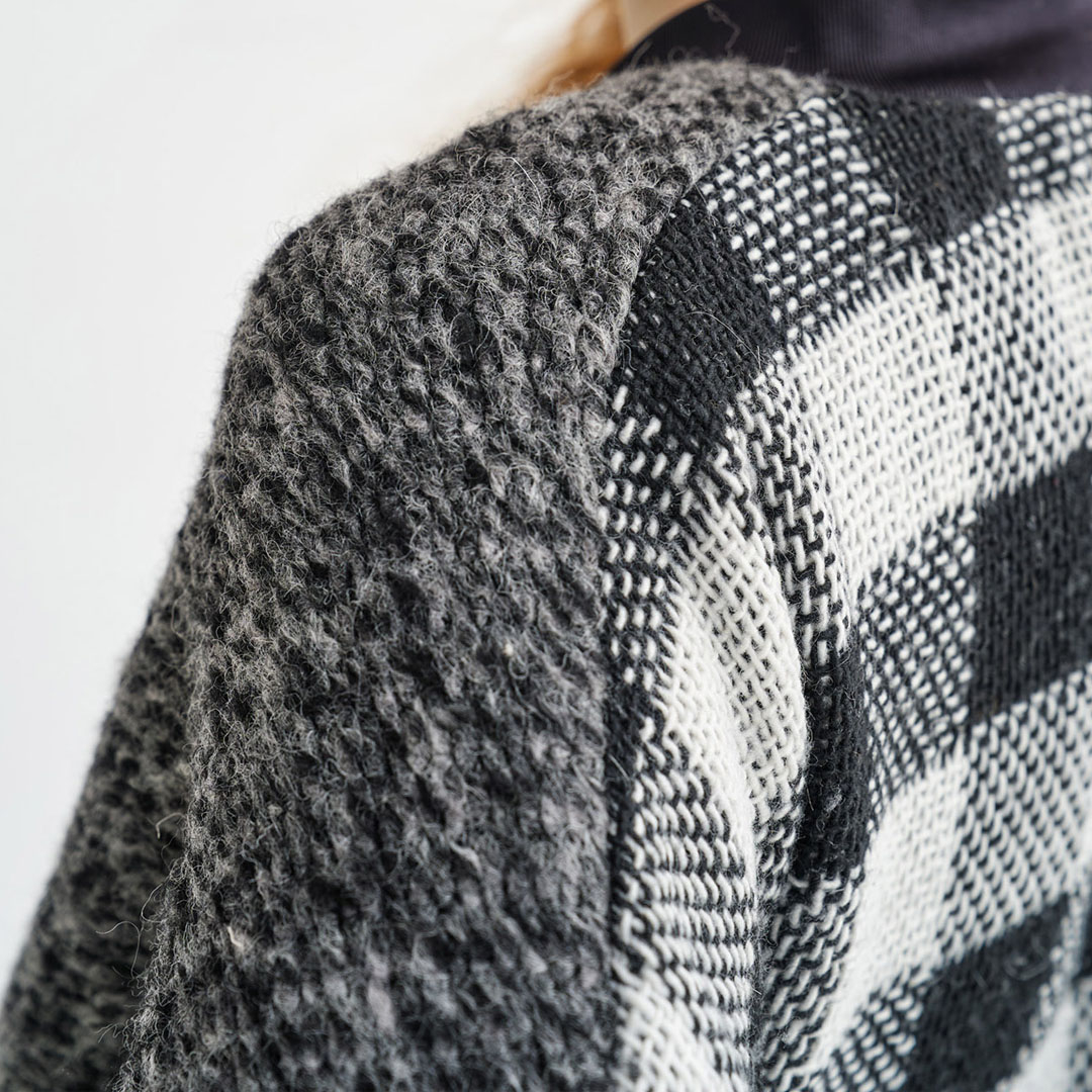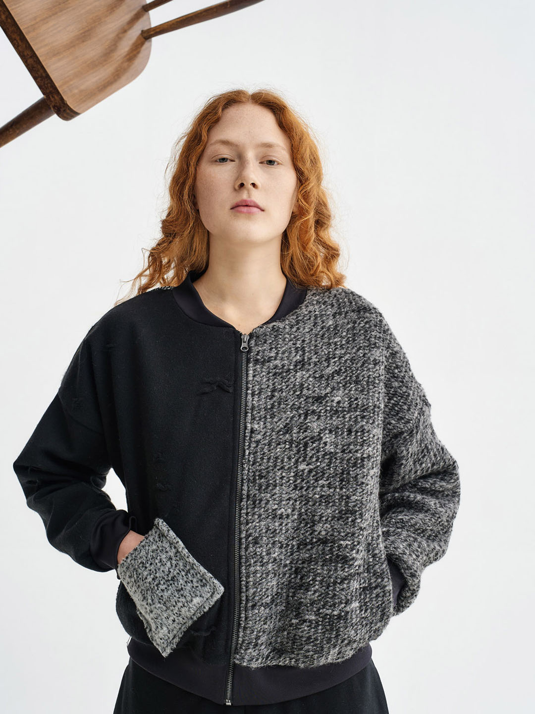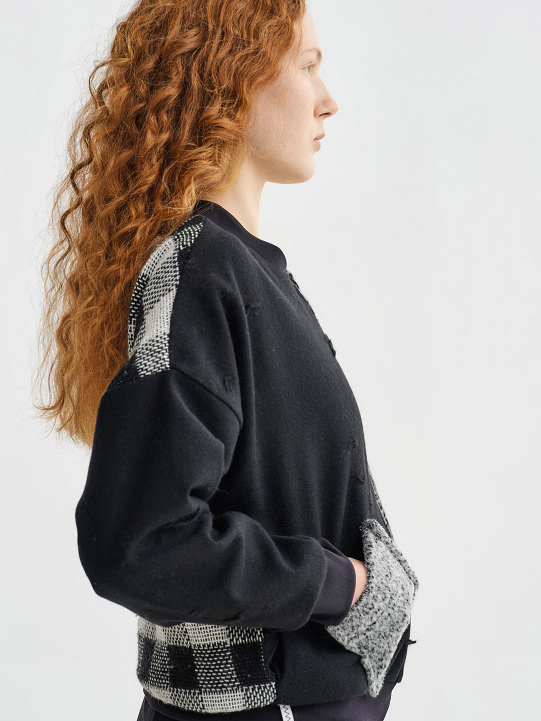 Bomber Aesthetic de Amma, está confeccionada nunha combinación de 3 tecidos reciclados diferentes. Conta cun peto exterior e un forro interior a raias. Grazas ao seu contido de la, é extremadamente cálida e acompañarache nos teus looks casuais durante todo o día.
