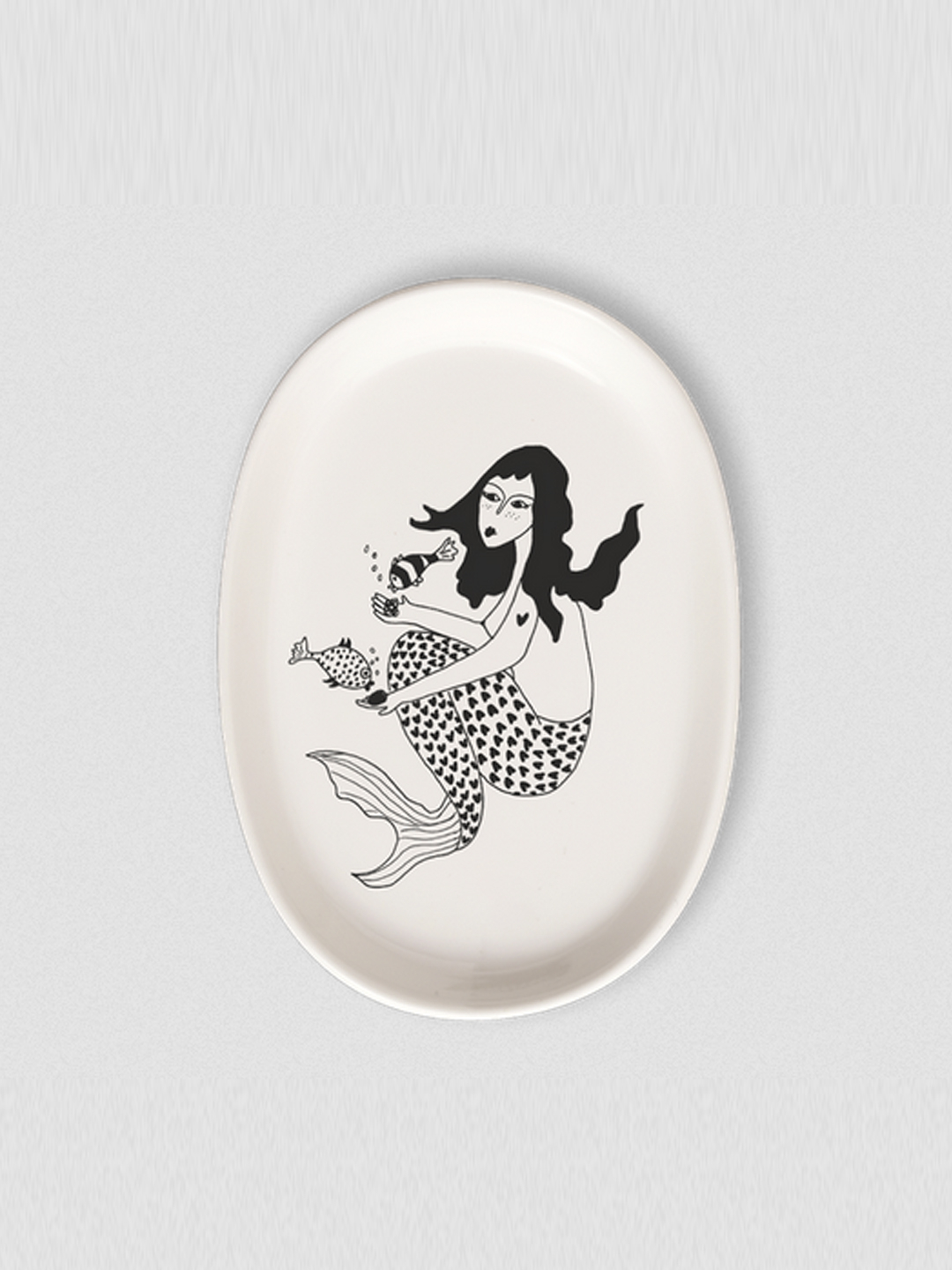 Prato de cerámica con ilustración en contraste negro de serea. Feito a man.
