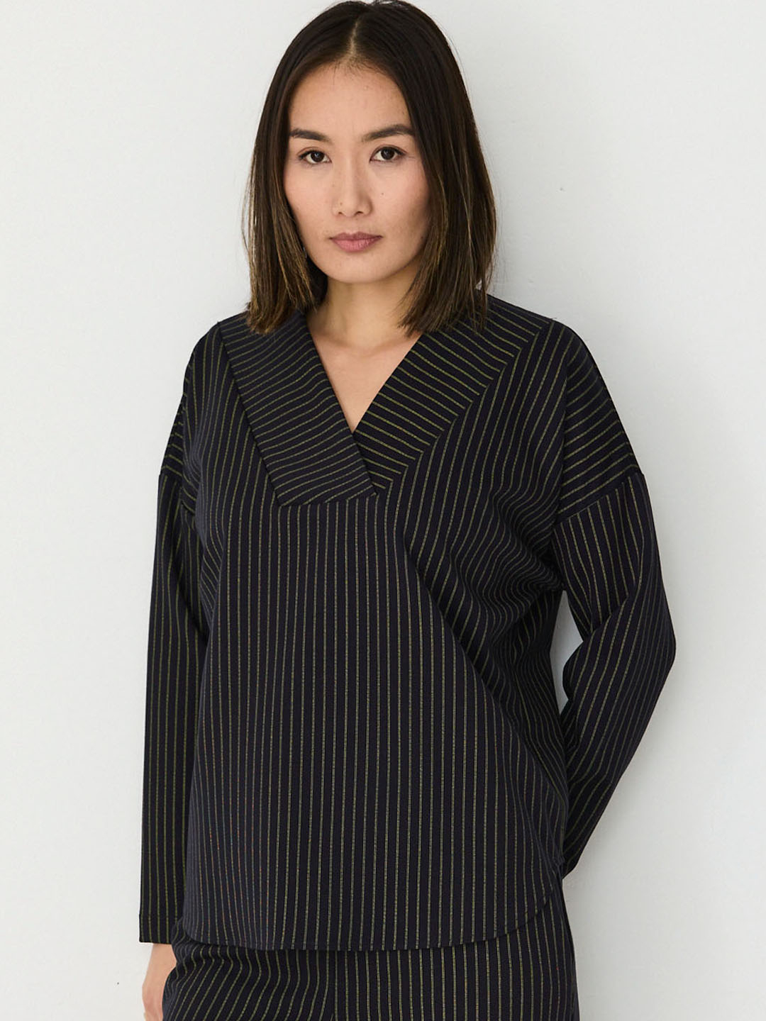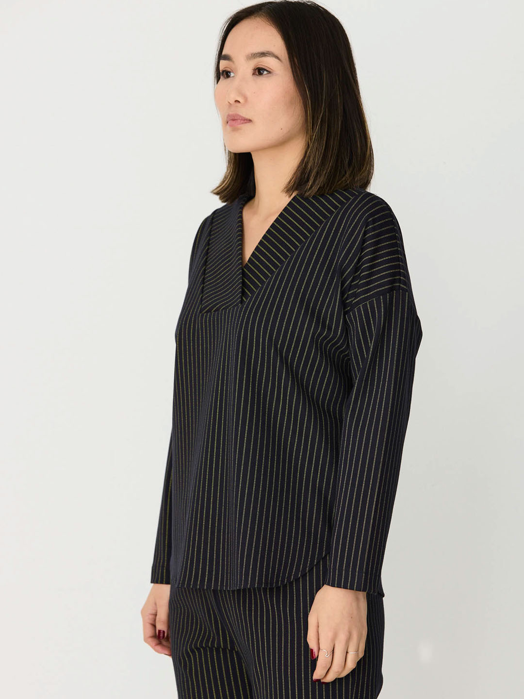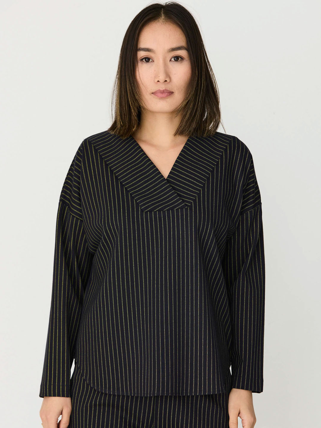 Top Juliana Phospho Stripes de Mónica Lavandera. Confeccionado nunha mistura de Viscosa e Poliamida este top negro con raias verde e moi versatil e da moito xogo no teu armario. Podelo poñer co pantalon Perca Phospho Stripes ou con outra peza de roupa básica que podemos ter xa no noso armario. E unha peza de edición limitada. Este top de manga longa ten un cuello en V e o texido e elastico que o fai moi cómodo de levar.